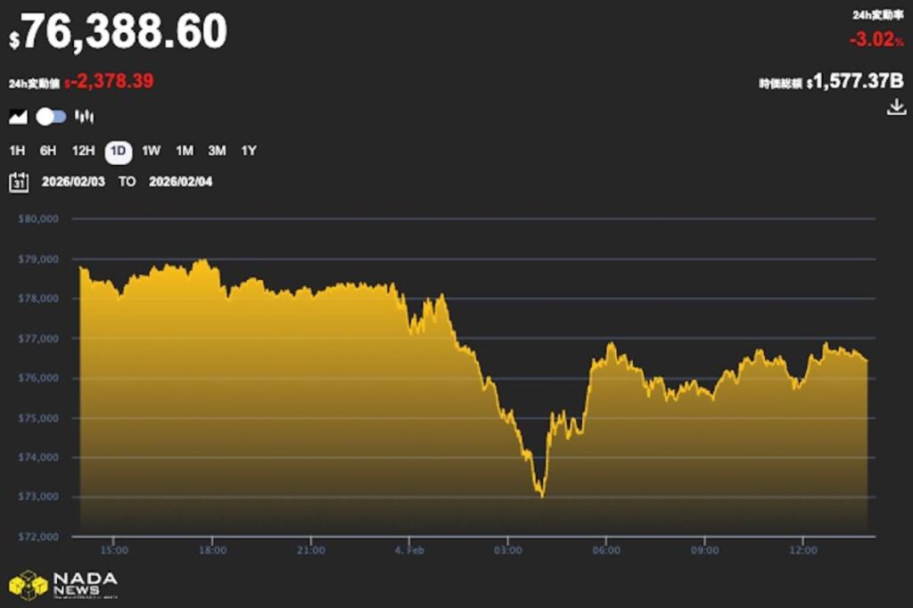 ビットコイン、一時7万3000ドル付近まで下落──米軍ドローンとイランの衝突報道で60分間に2億850···